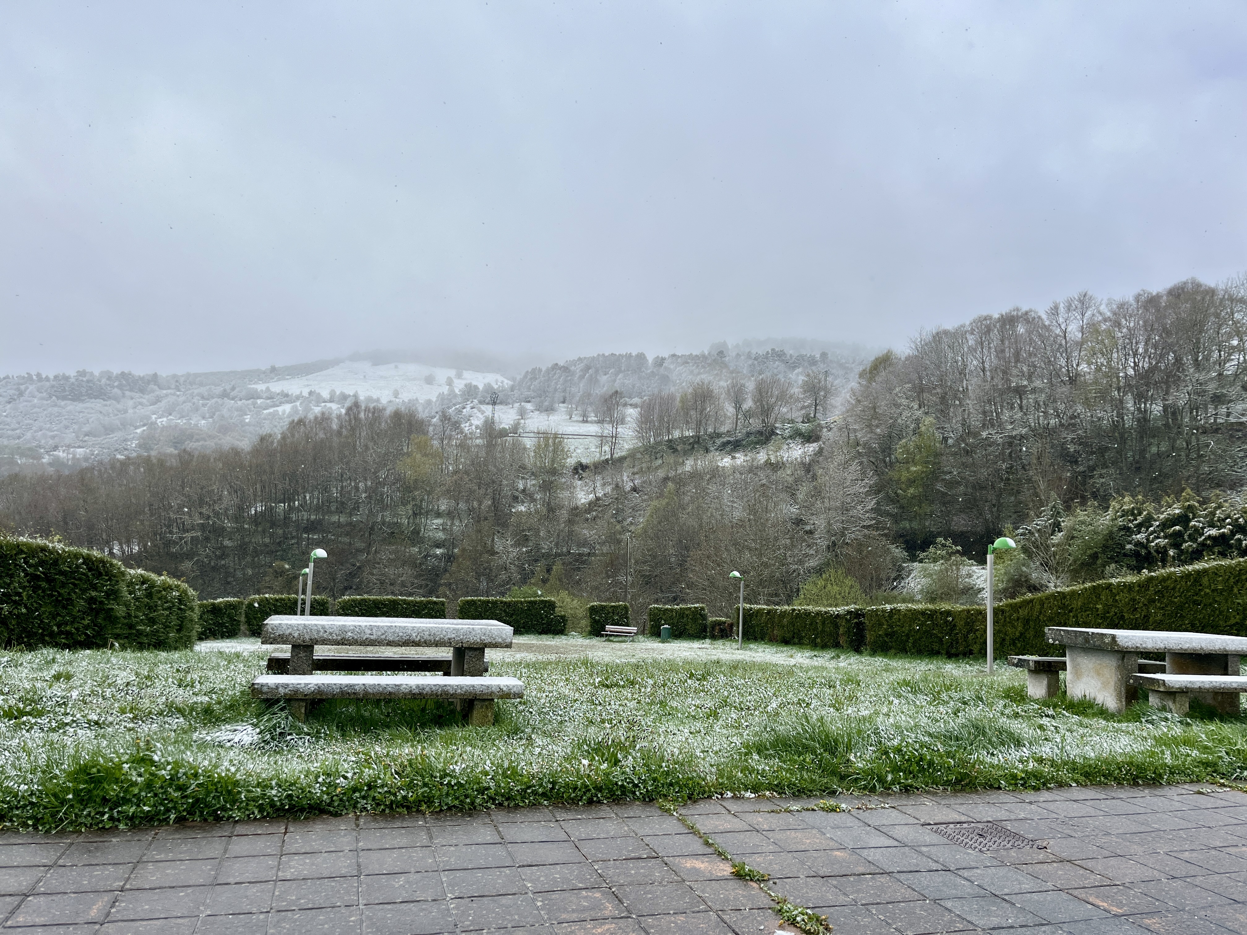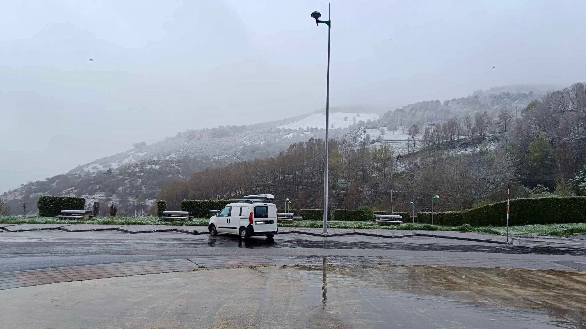 Alors oui, d’accord, mais on n’aurait pas misé sur la neige, en Espagne, fin avril (à seulement 1100 mètres d’altitude). Légèrement décontenancés par les -3 alors ressentis, on doit l’avouer, il a fallu sortir le chauffage.