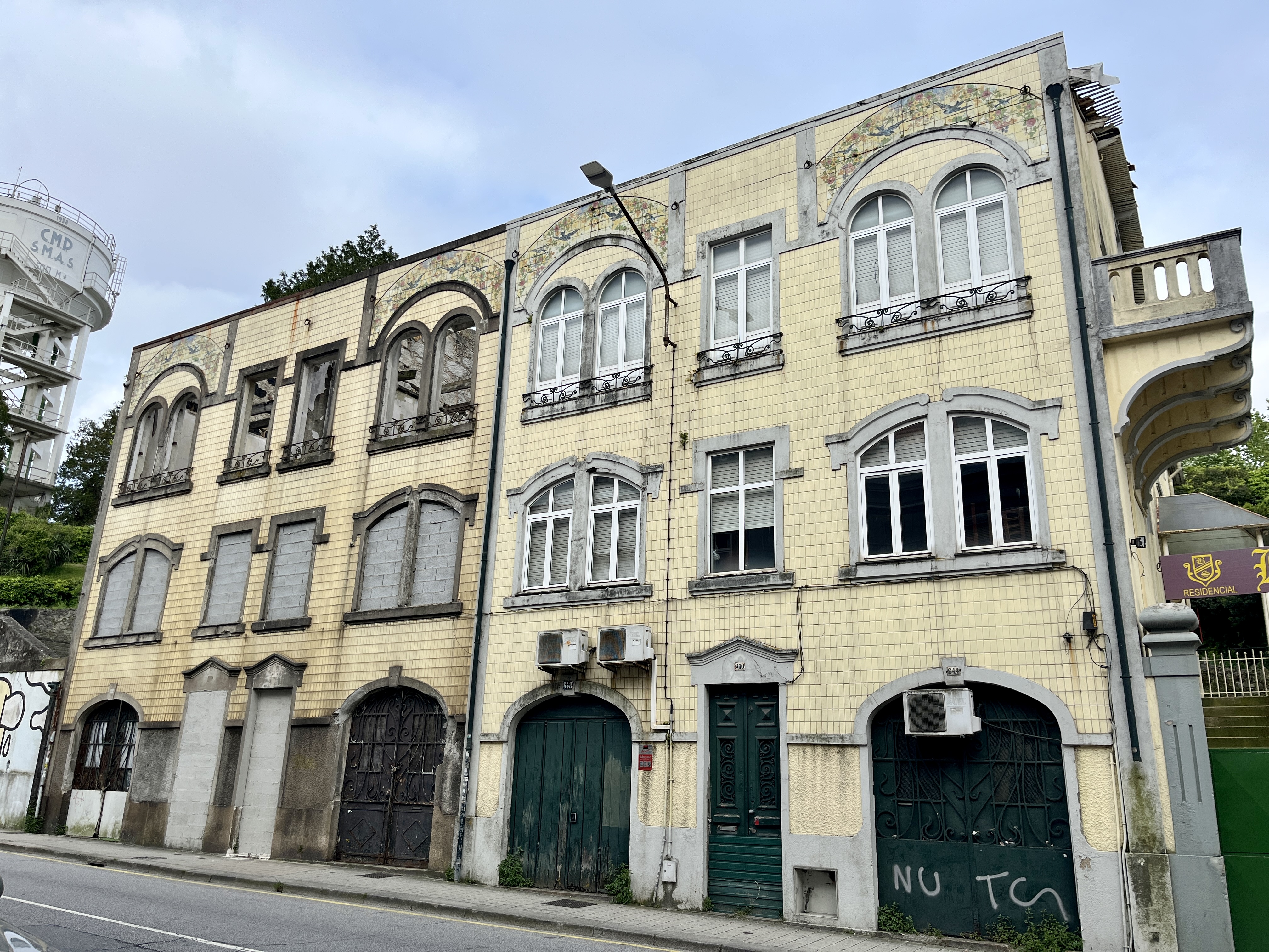 Car Porto, de prime abord, c’est une improbable architecture de façade, qui mêle délabré, nature en reprise de droit et bâtiments abandonnés, vides et sans toit (ci-dessous, un léger échantillon ; nous ne mettons pas les pires photographies).