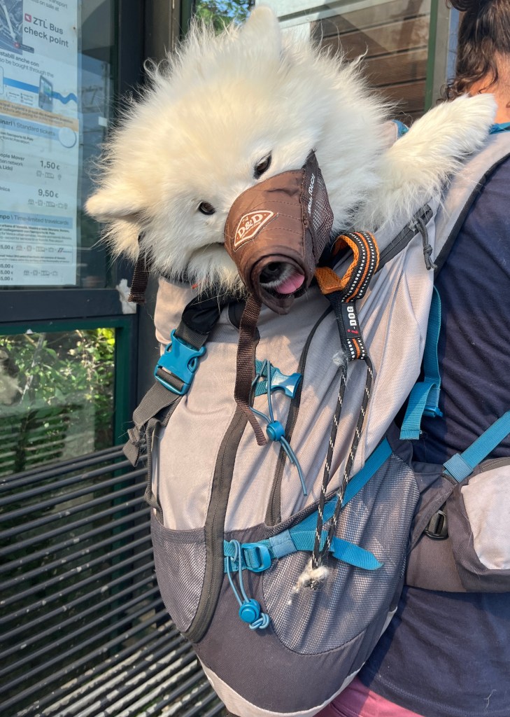Je précise que Yüna n’a eu la muselière que durant les transports. Et le sac de voyage une fois. Donc oui, pour le reste elle a adoré 😌