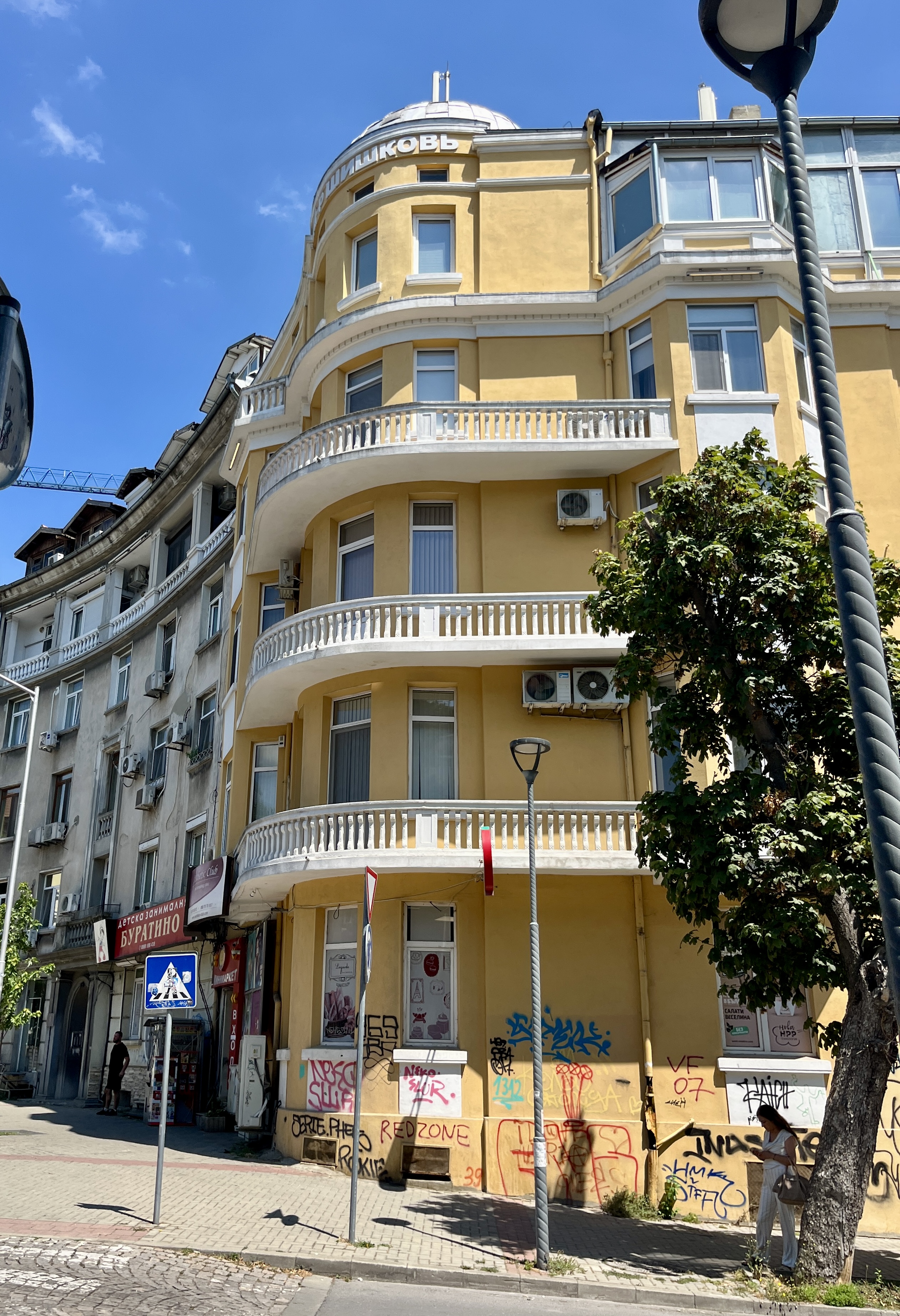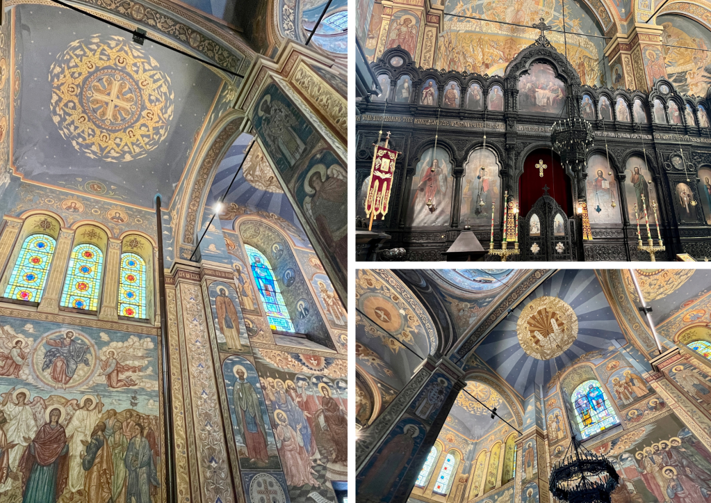 Point culminant de ce tour : la visite de la cathédrale de l’Assomption (Катедрален храм „Успение Богородично“). Derrière son imposante façade de pierre ocre, elle veille sur la ville comme une grande dame silencieuse. Inauguré en 1886, le monument est l’un des symboles les plus reconnaissables de Varna. La gamme bleutée et sombre de son intérieur surprend au premier coup d’œil.
