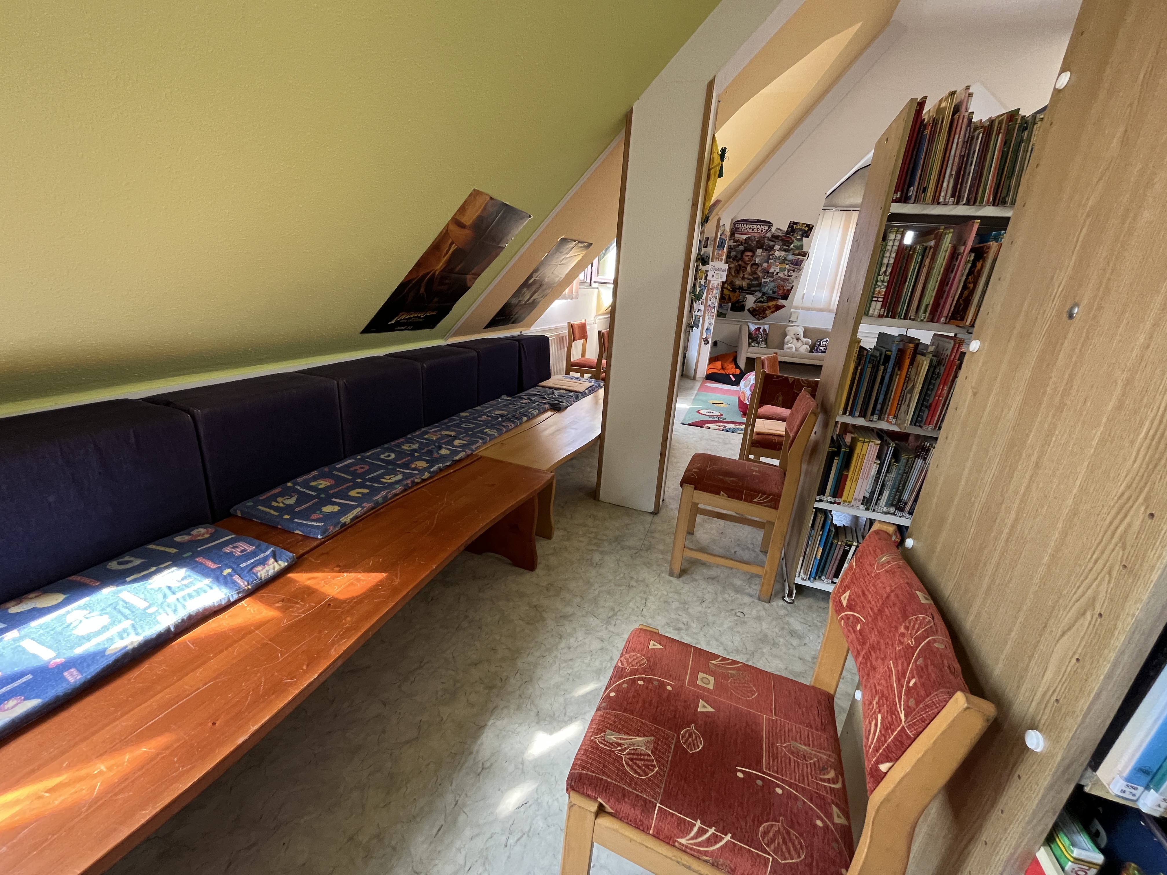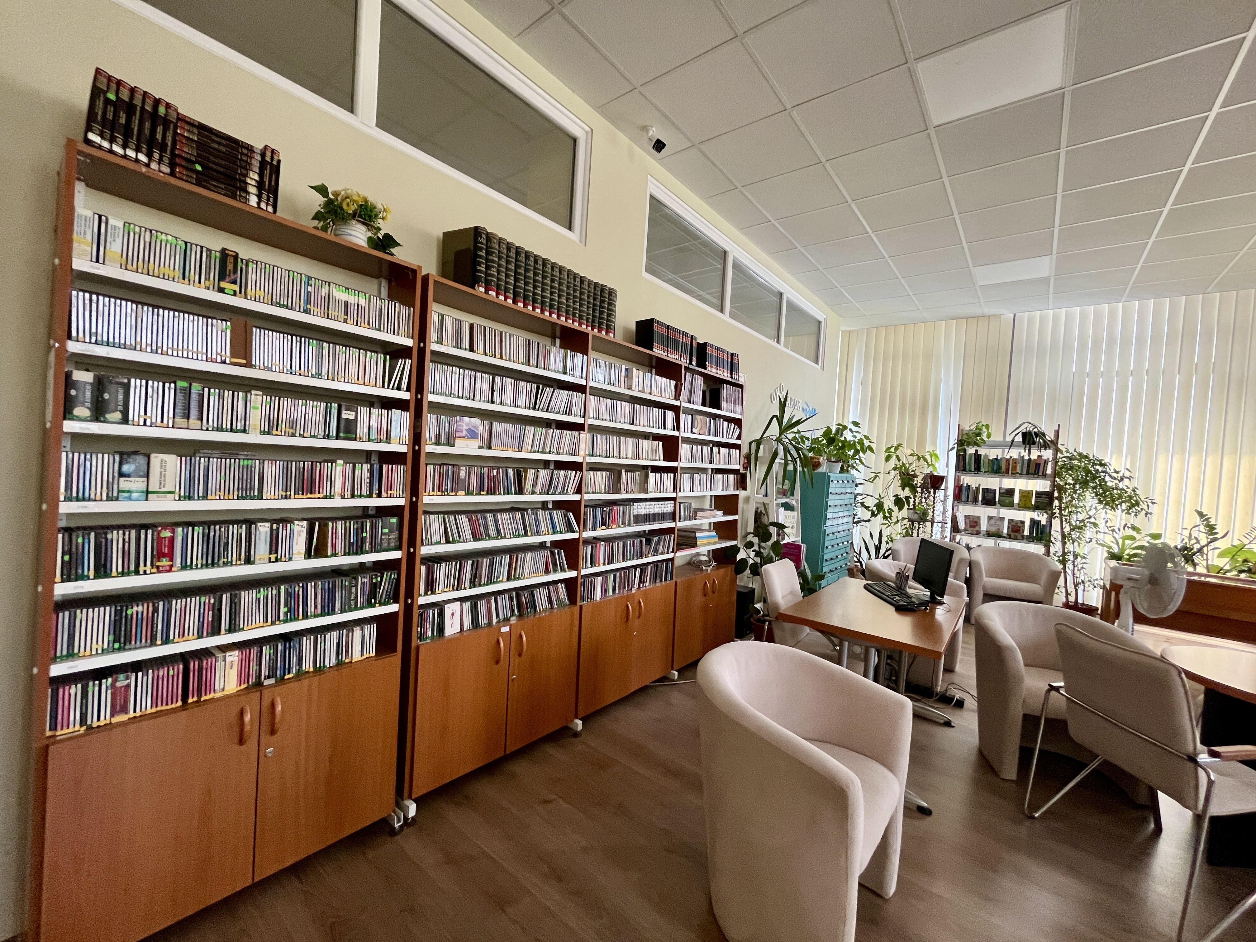 Il fait sombre, pour ne pas dire noir (ça ne se voit pas, mais c’est encore pire au sein même des rayons), et le bâtiment ne dispose pas de système de ventilation. Donc, très chaud ! Il y a un p’tit côté « vieillot », un peu figé, qui n’invite pas forcément à s’y installer, surtout du côté des DVD et CD.