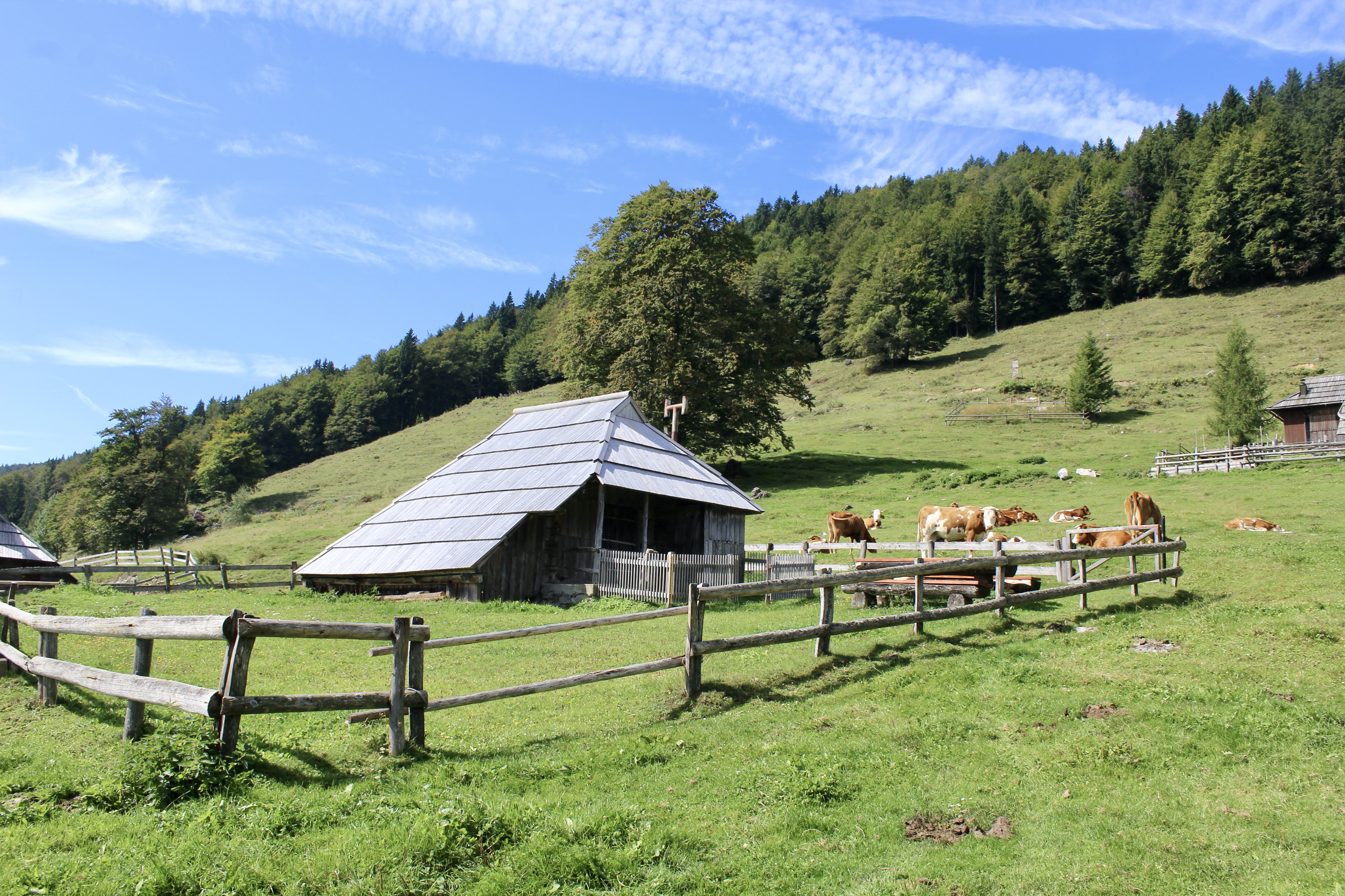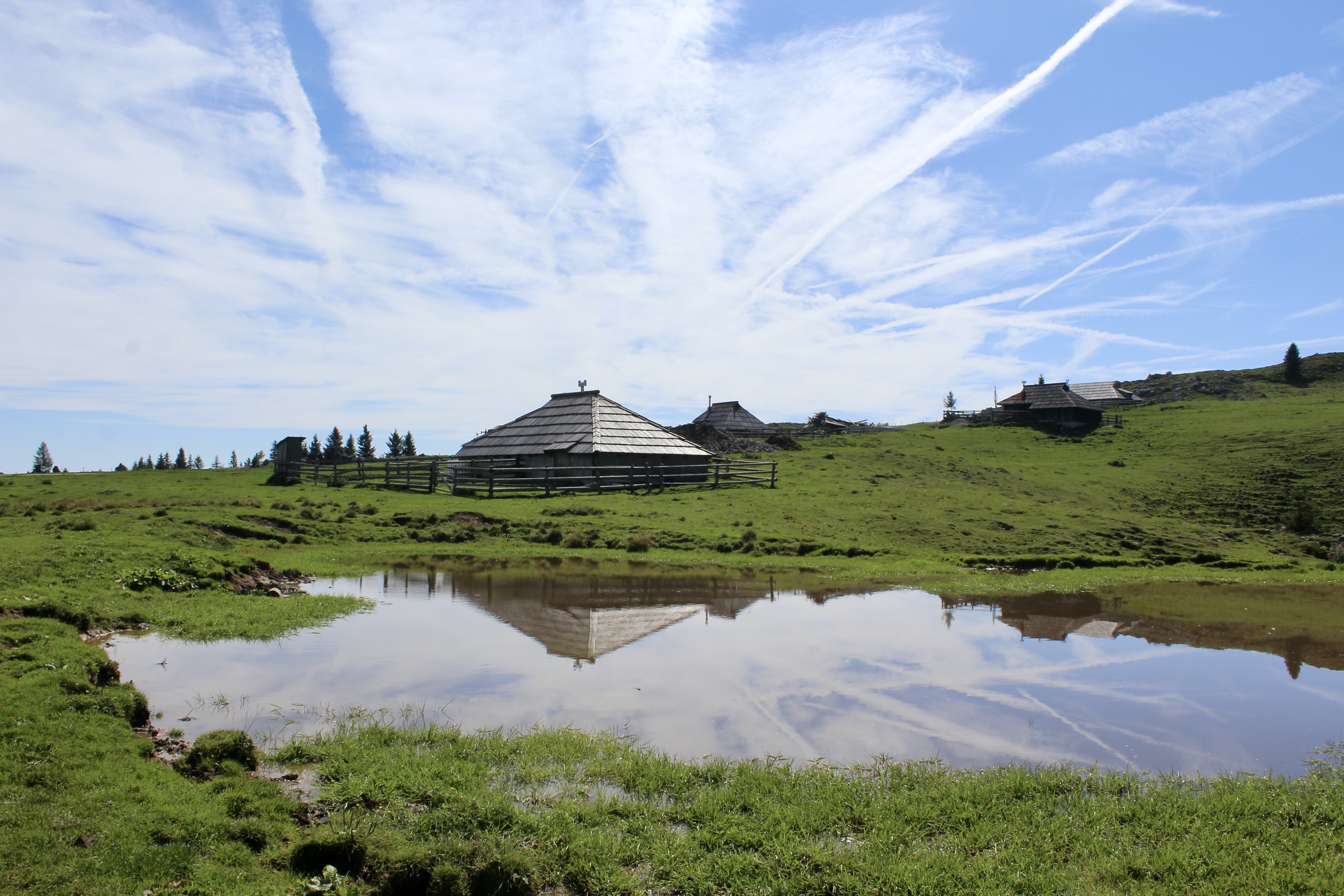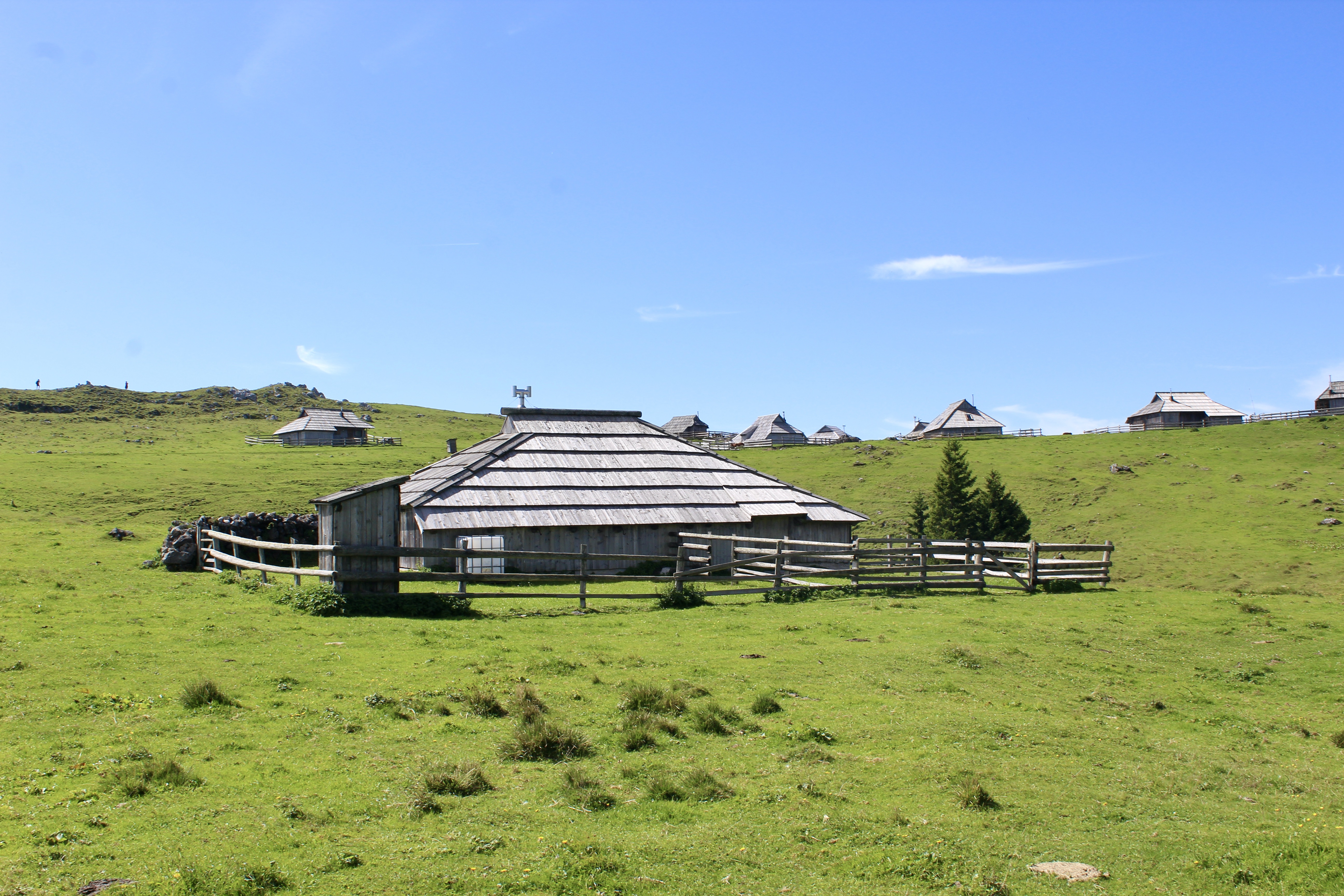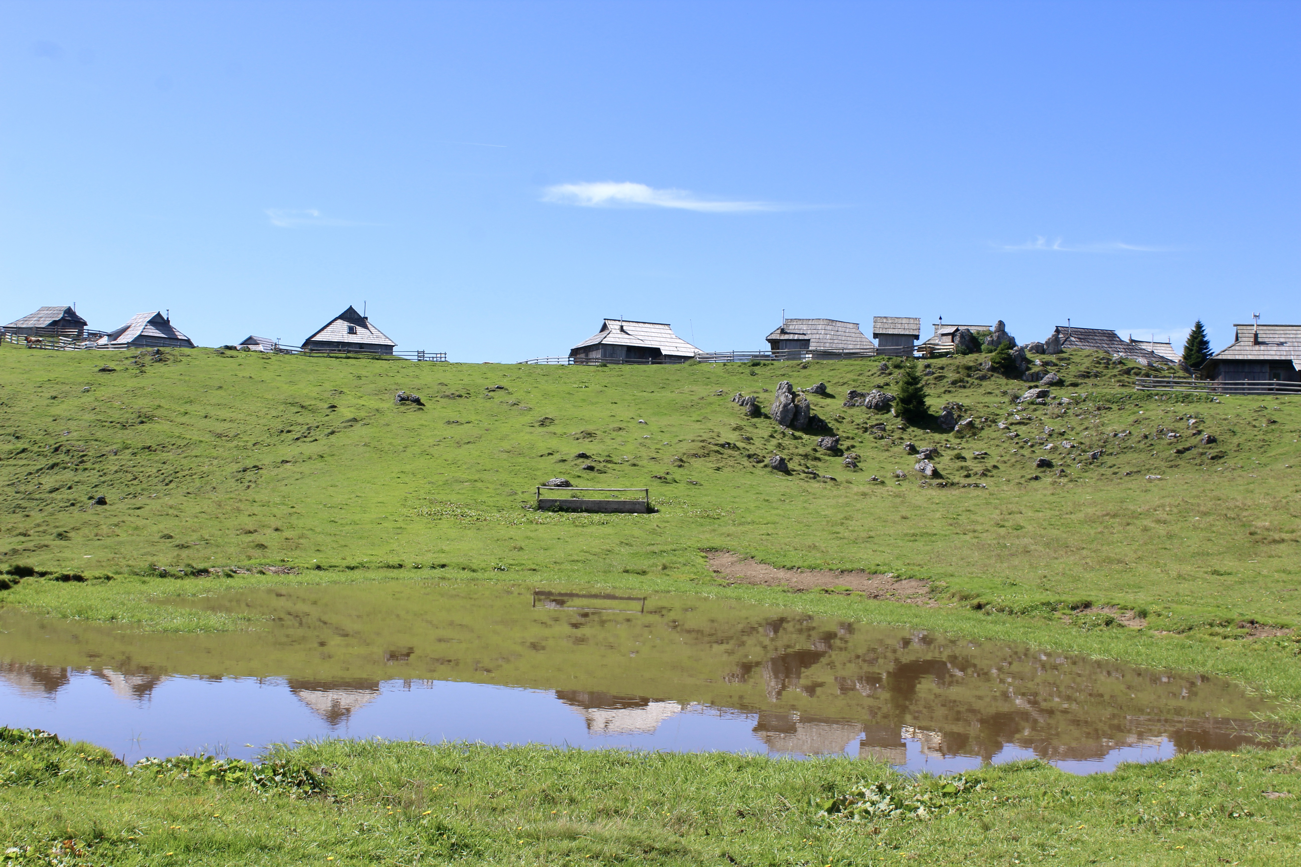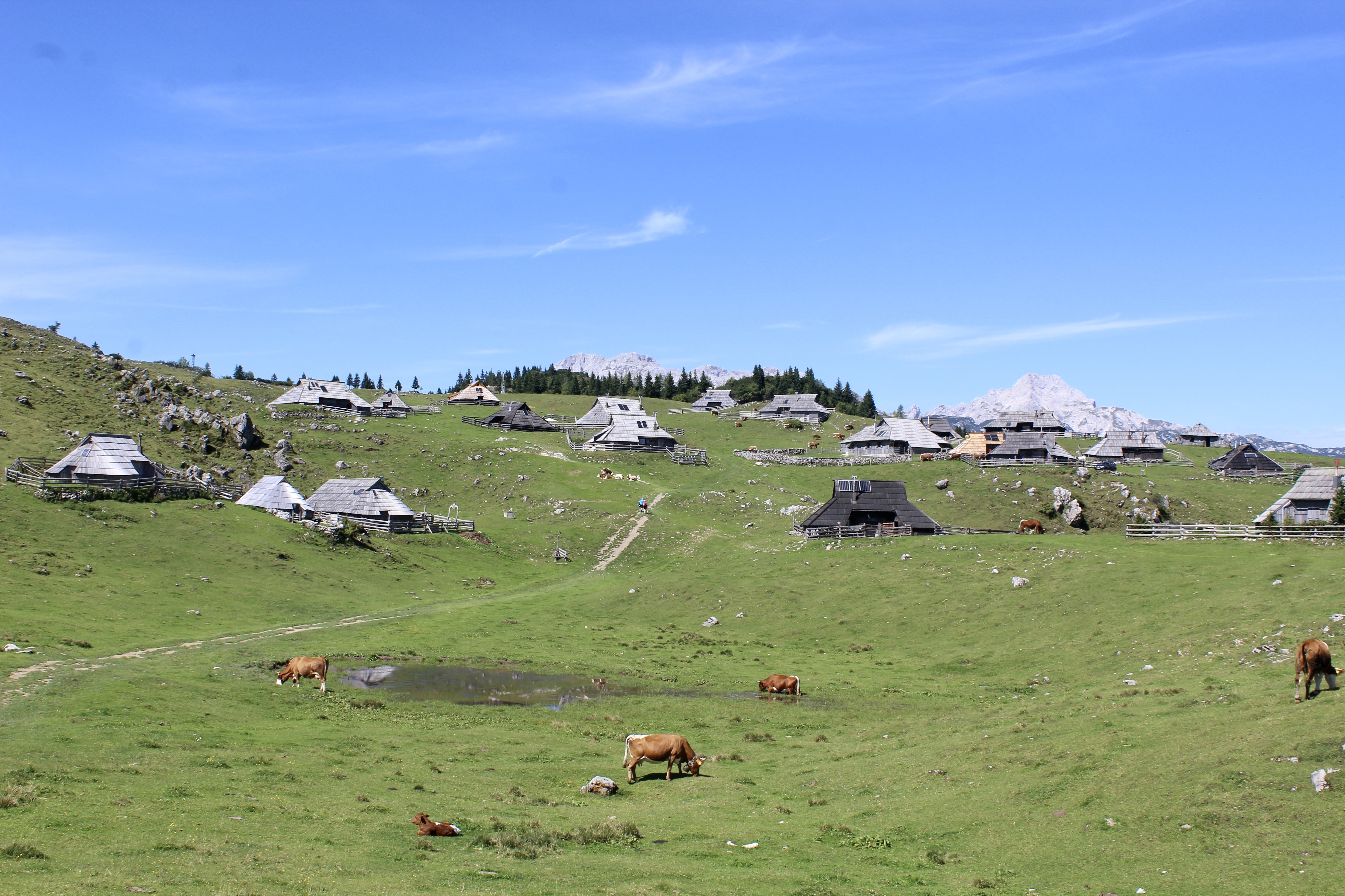 C’est un vaste plateau alpin situé dans les Alpes kamniques, surtout connu pour son ensemble unique de huttes en bois, construites par les bergers. On peut y accéder soit par une route de montagne, puis grâce à une « petite randonnée », soit grâce à un téléphérique (depuis Kamniška Bistrica). Mais ce dernier est hors service depuis quelques jours pour cause de vérifications, suite à la foudre…