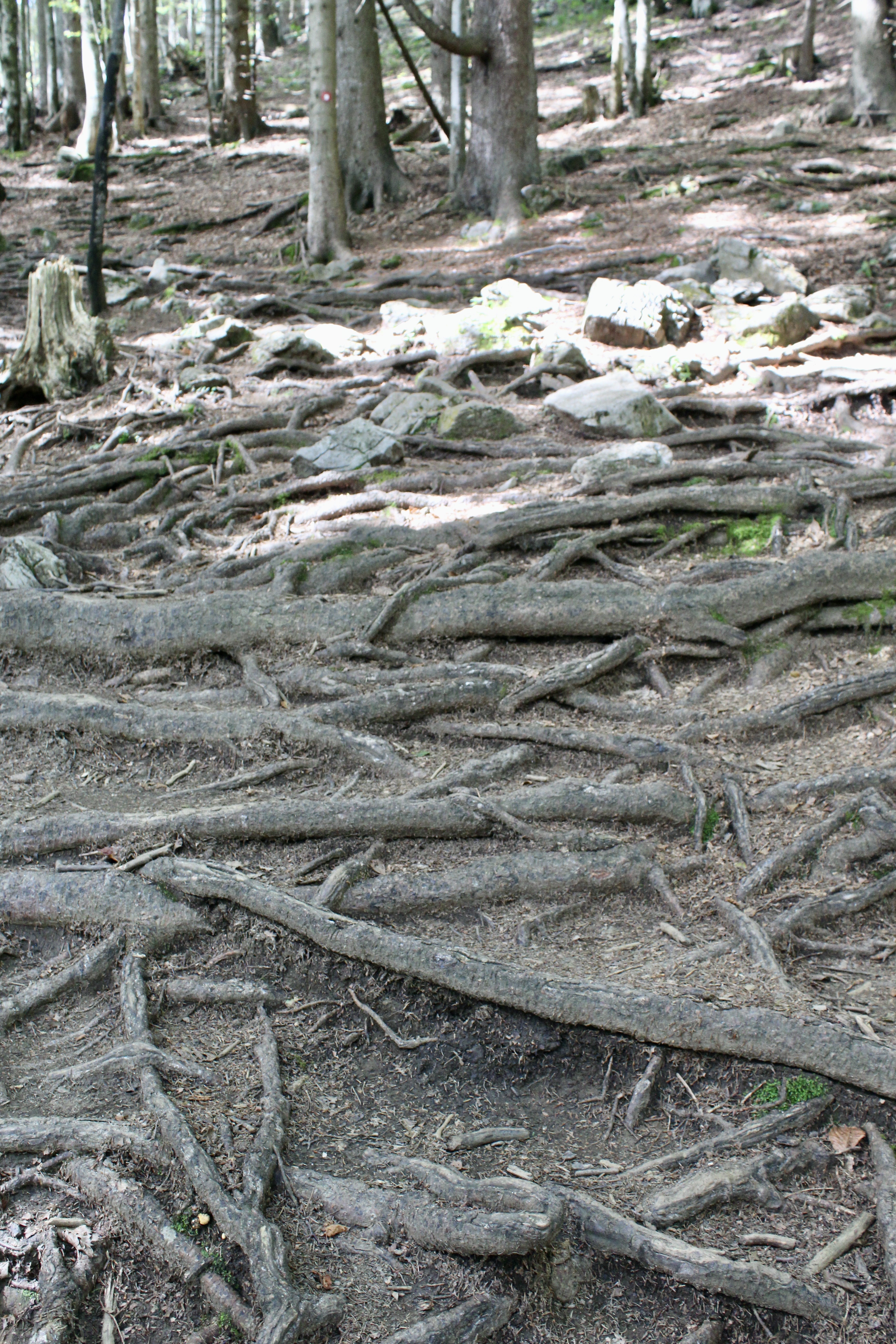 Marchons, donc. Sagement. Mais c’est qu’ça grimpe ! Sévère même. Et le balisage, ainsi que les indications, ne sont pas des plus clairs… Hum…