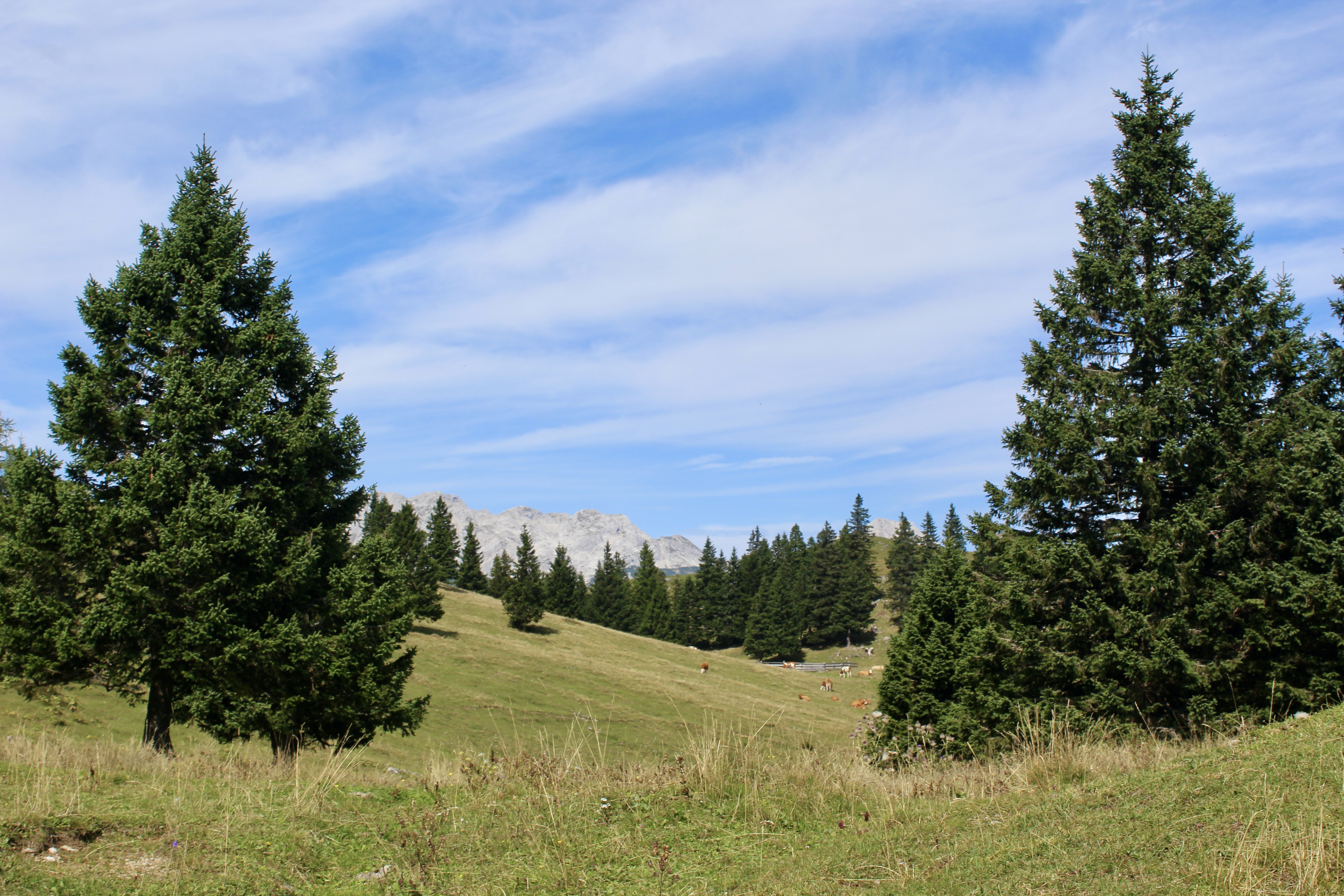 Alpages verdoyants, vues sur les sommets et silence apaisant. À nouveau, des paysages encore jamais vus jusque-là mais dignes d’une carte postale.