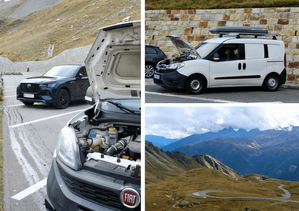 Eh oui, moment prévention : toujours partir avec du liquide de refroidissement, ou à défaut un peu d’eau… Ça sauve un moteur ^^ (pas d’inquiétude, réinjection du liquide adéquate faite depuis).