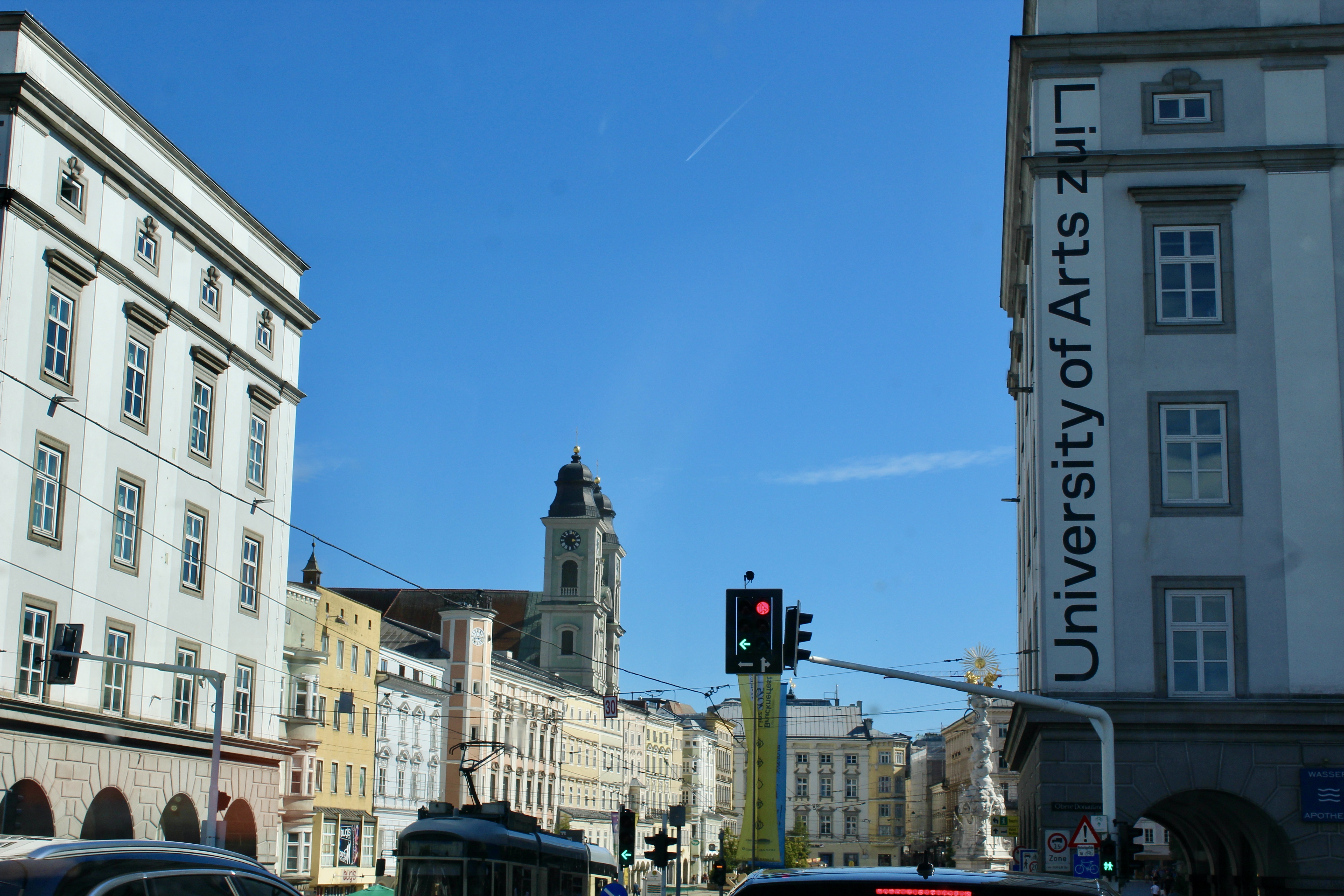 Une rapide traversée de la ville en voiture nous conforte dans notre premier ressenti : à part une jolie place (la Hauptplatz), Linz ne nous attire pas vraiment… Nous la laissons donc derrière nous pour rejoindre notre objectif du jour, non loin de là : l’abbaye Saint-Florian.