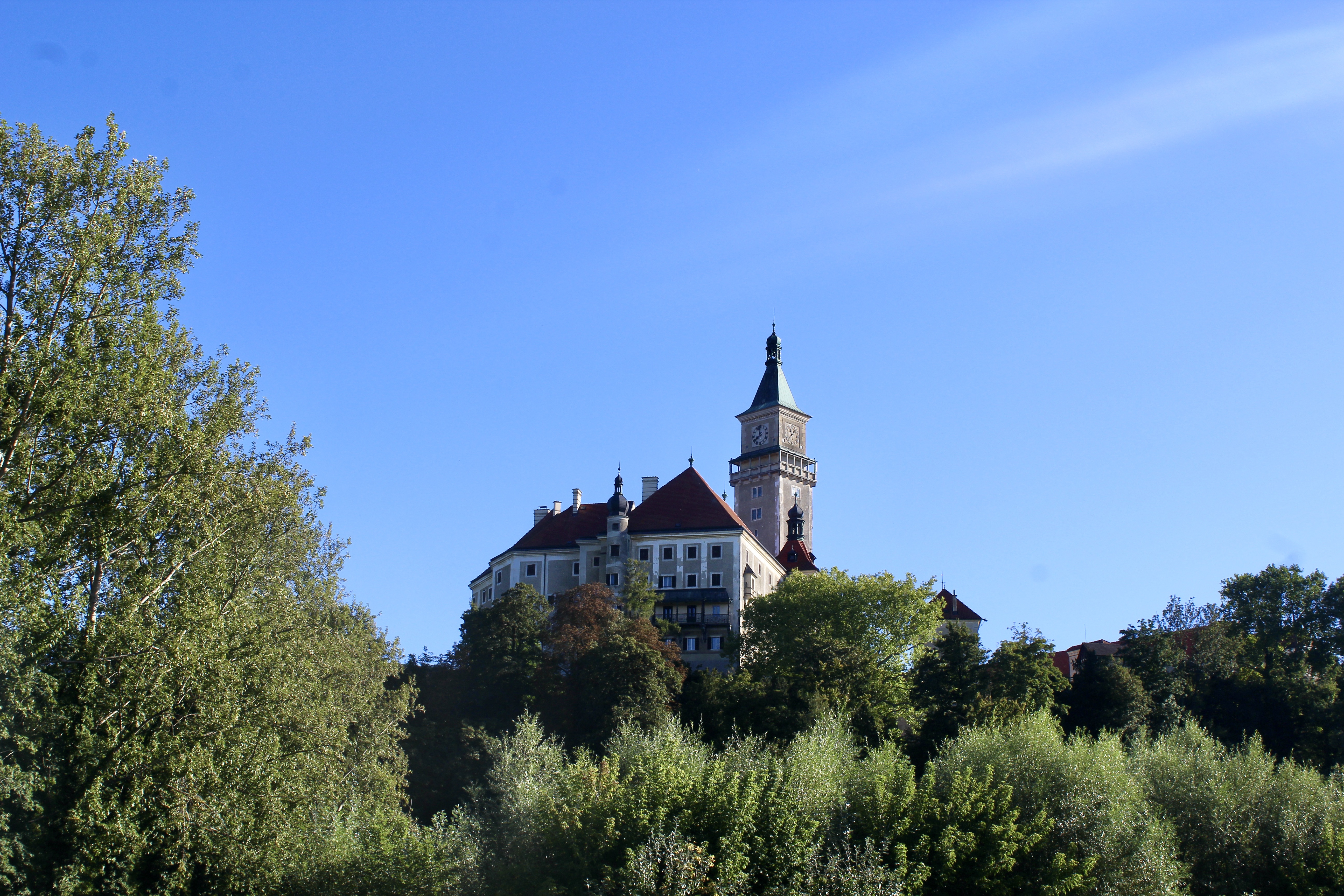 Il se dresse sur une petite île, à Gmunden, en Haute-Autriche. Relié à la rive par une passerelle en bois de plus de cent mètres, il offre un panorama pittoresque sur les eaux et les montagnes alentour, entouré de fleurs. Ses origines remontent au XIᵉ siècle, mais son allure actuelle reflète surtout des transformations des XVIᵉ et XVIIᵉ siècles.
