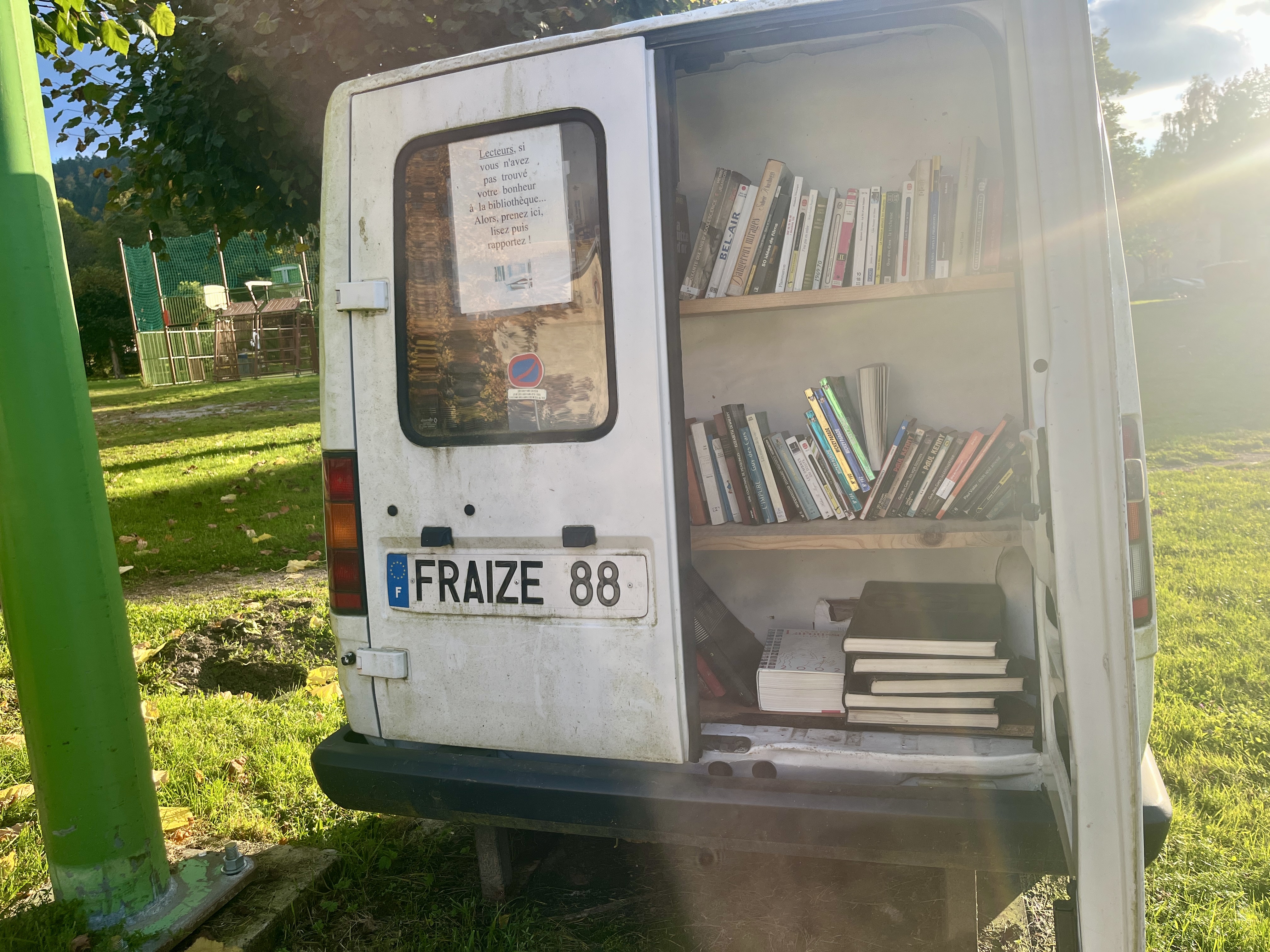 On savoure d’autant plus avec cette originale boîte à livres (dommage, les titres disponibles ne sont pas à notre goût) et ces magnifiques couleurs automnales.