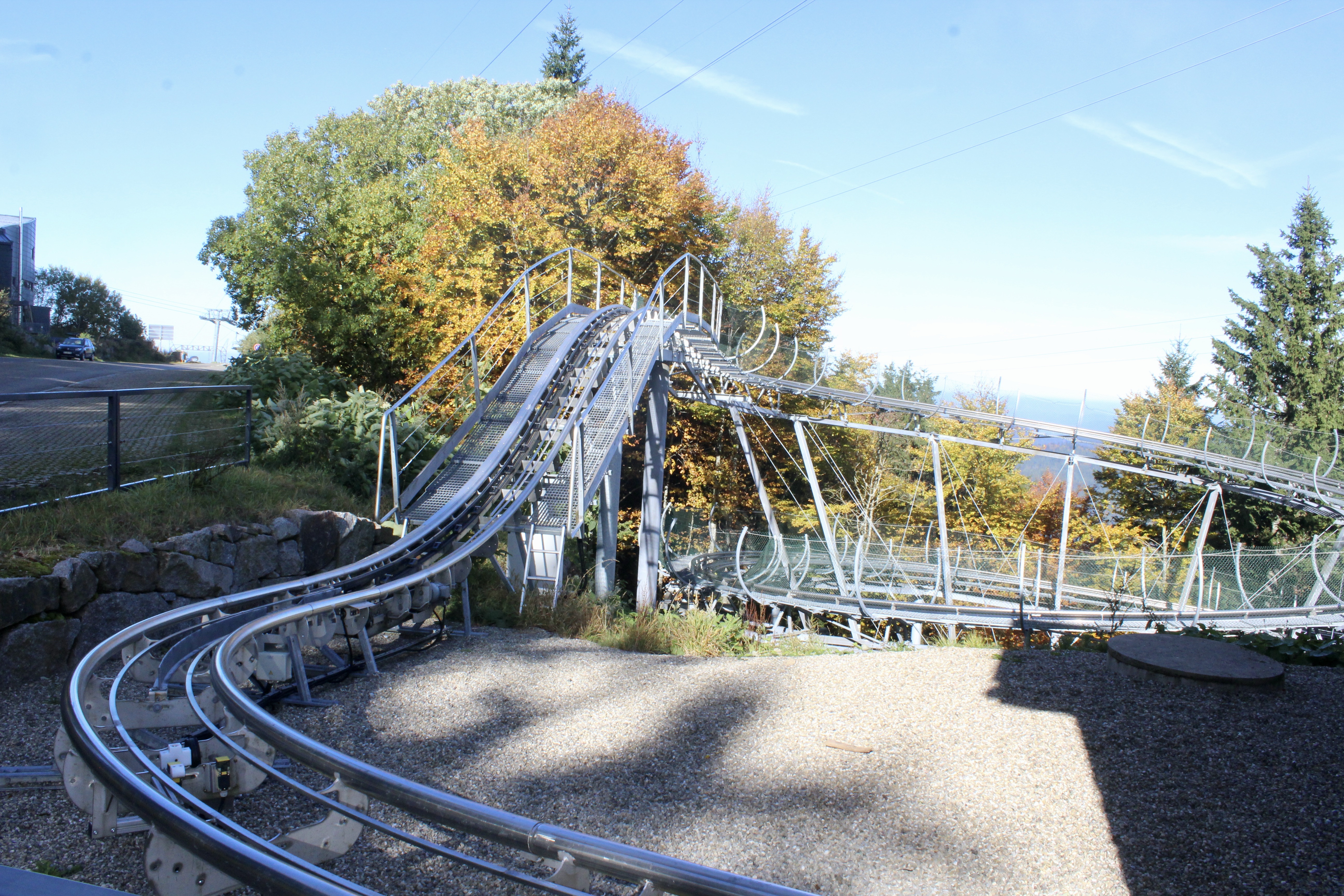 En route, nous rencontrons de magnifiques paysages et une drôle de structure. Il s’agit d’une — incroyable — luge d’été (qui nous donnait très envie).