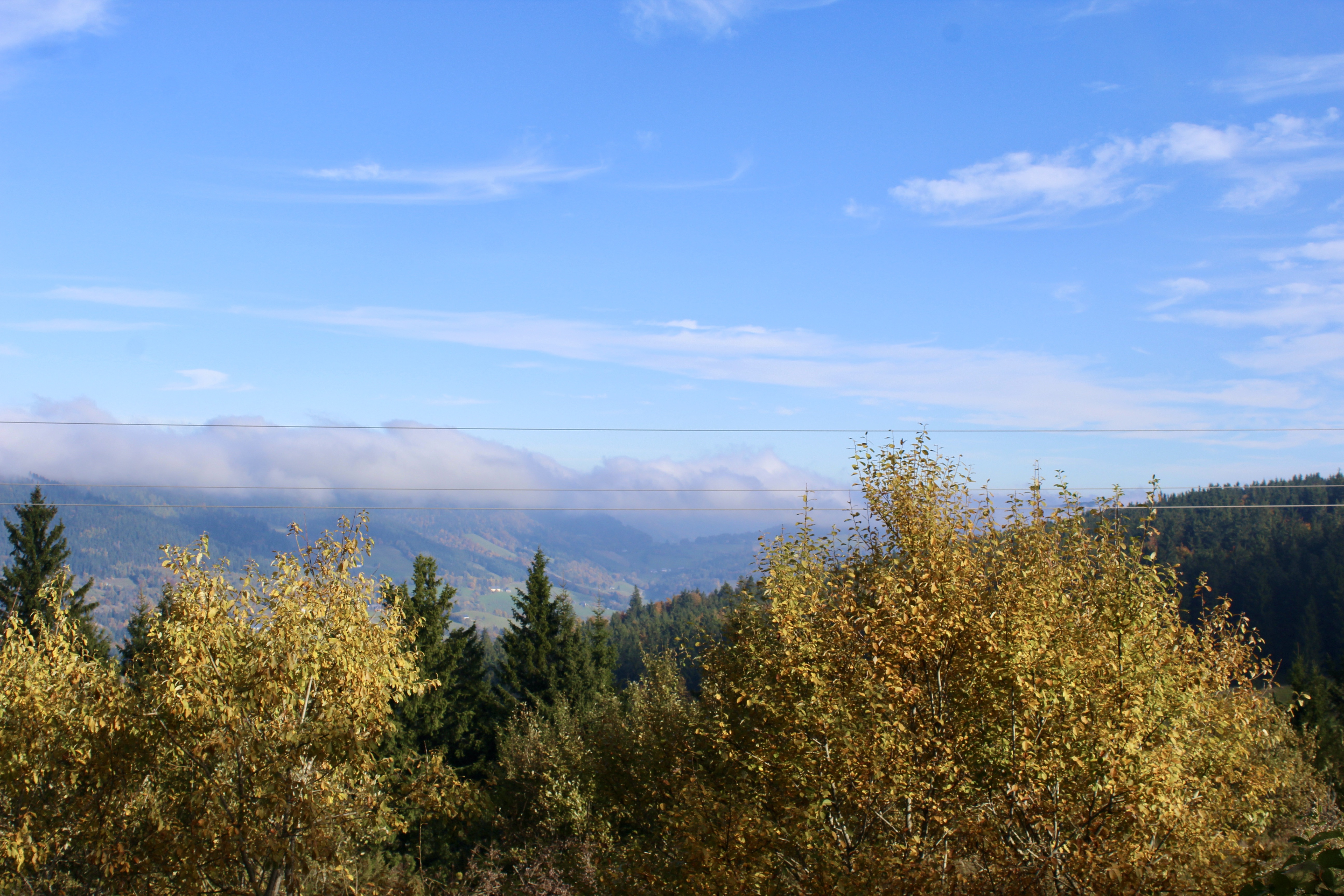C’est un sentier tranquille, qui serpente entre les sapins, avec quelques points de vue sur les vallées verdoyantes.